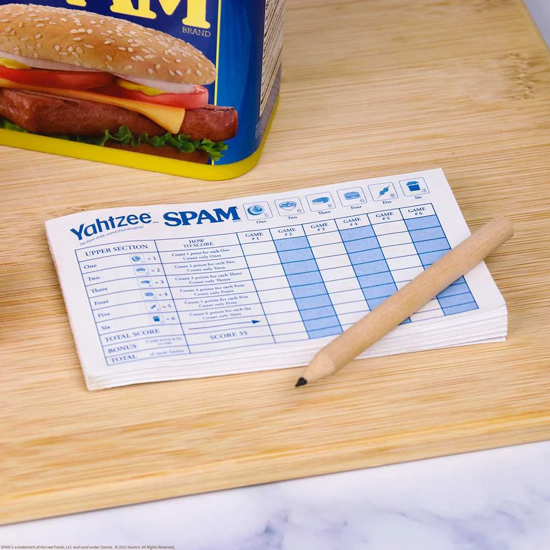 Play with your food in this ready-to-consume version of the classic “Shake, Score & Shout” dice game! YAHTZEE® SPAM™ Brand serves up a slice of fun and nostalgia with custom dice featuring your favorite SPAM servings.